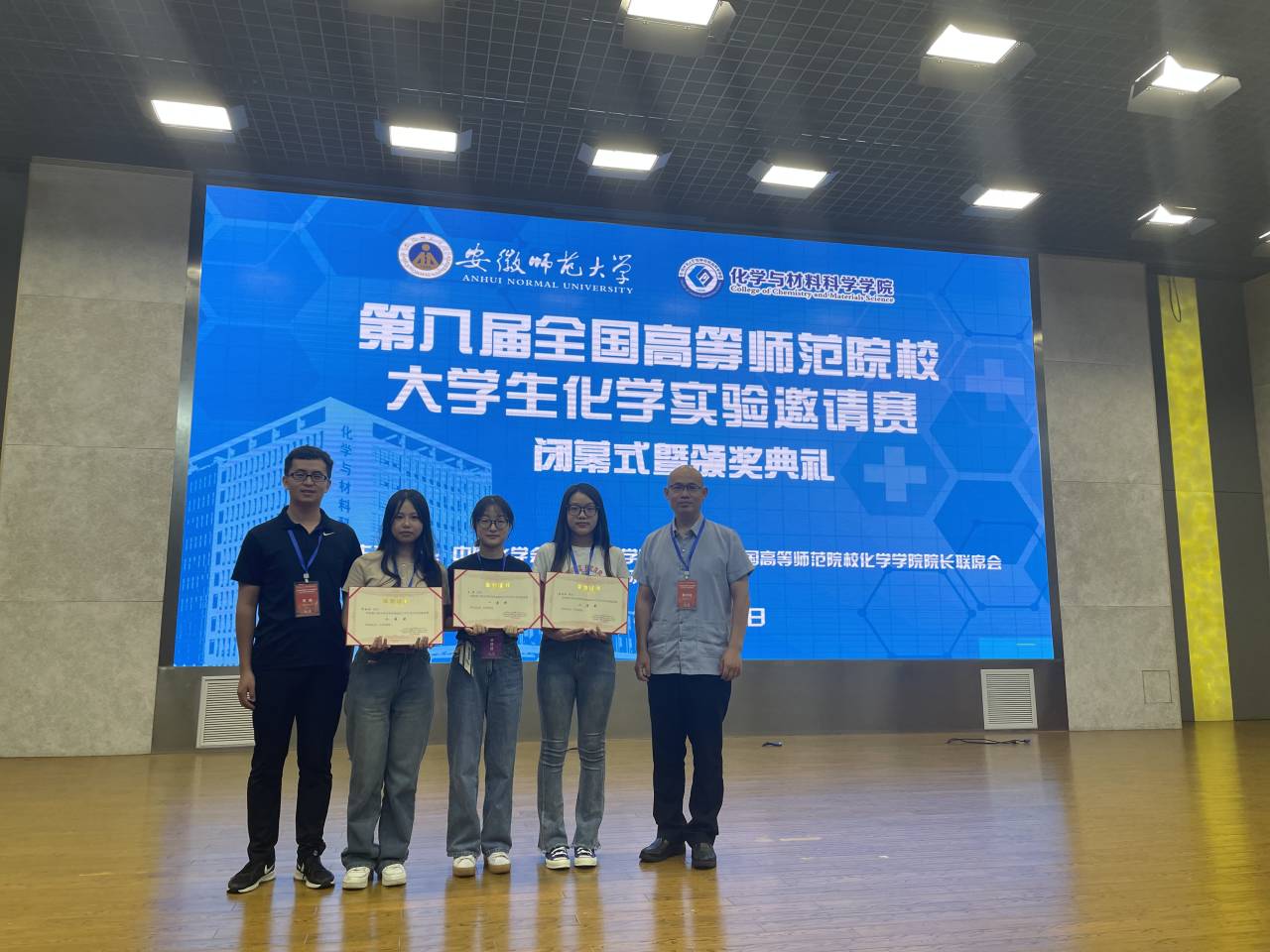 7月14日至16日,第八届全国高等师范院校大学生化学实验邀请赛暨高等师范院校化学实验教学与实验室建设研讨会在安徽师范大学举行,我们选送的三名学生荣获一等奖1项、二等奖2项。