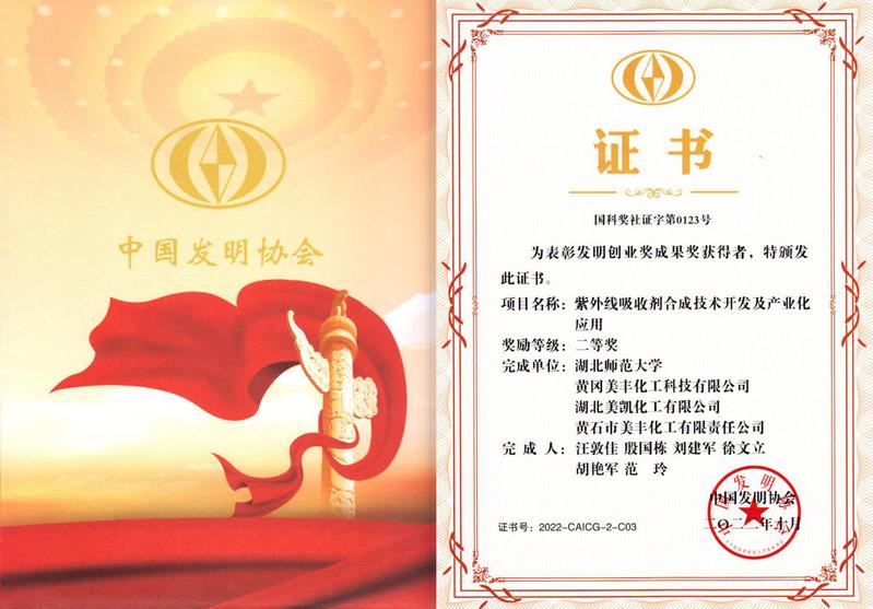 合作企业长期与我们联合开展紫外线吸收剂技术研发与应用,近年来在我们相继建成“校企联合紫外线吸收剂工程研究中心”与“校企合作微通道连续反应技术联合实验室”。合作企业获批国家高新技术企业2家,建成湖北省企业技术中心1个,2022年入选第四批国家级专精特新“小巨人”企业,紫外线吸收剂系列产品获得美国食品药品监督管理局(FDA)认证。
