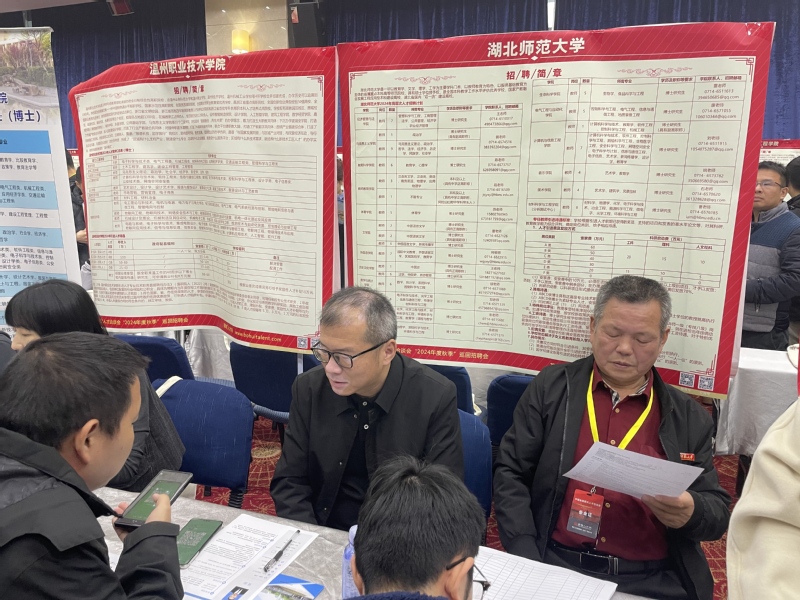 11月18-19日,党委书记罗鸿飞、行政助理李新一行赴武汉市、长沙市招聘博士,与应聘我们的20余名化学、化学工程与技术、材料科学与工程、环境科学与工程等学科博士亲切交流。参加应聘的2024届、2025届博士与学院领导深入了解我校人才招聘政策及学院办学条件、优势学科方向。罗鸿飞、李新耐心回复应聘博士咨询的各项问题,欢迎他们积极参加学院组织的面试并选择到学校就职。