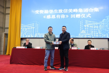 余涛代表学校及全体受助学生对美峰集团表达了真诚的感谢,介绍了学校“三心工程”资助体系的做法和成效,介绍了学院近年来发展取得的成绩。他对全体学生提出三点希望,希望大家自知者明,满怀感恩迎接美好时代;自信者胜,满怀梦想描绘精彩人生;自胜者强,满怀爱心传承奉献品德。