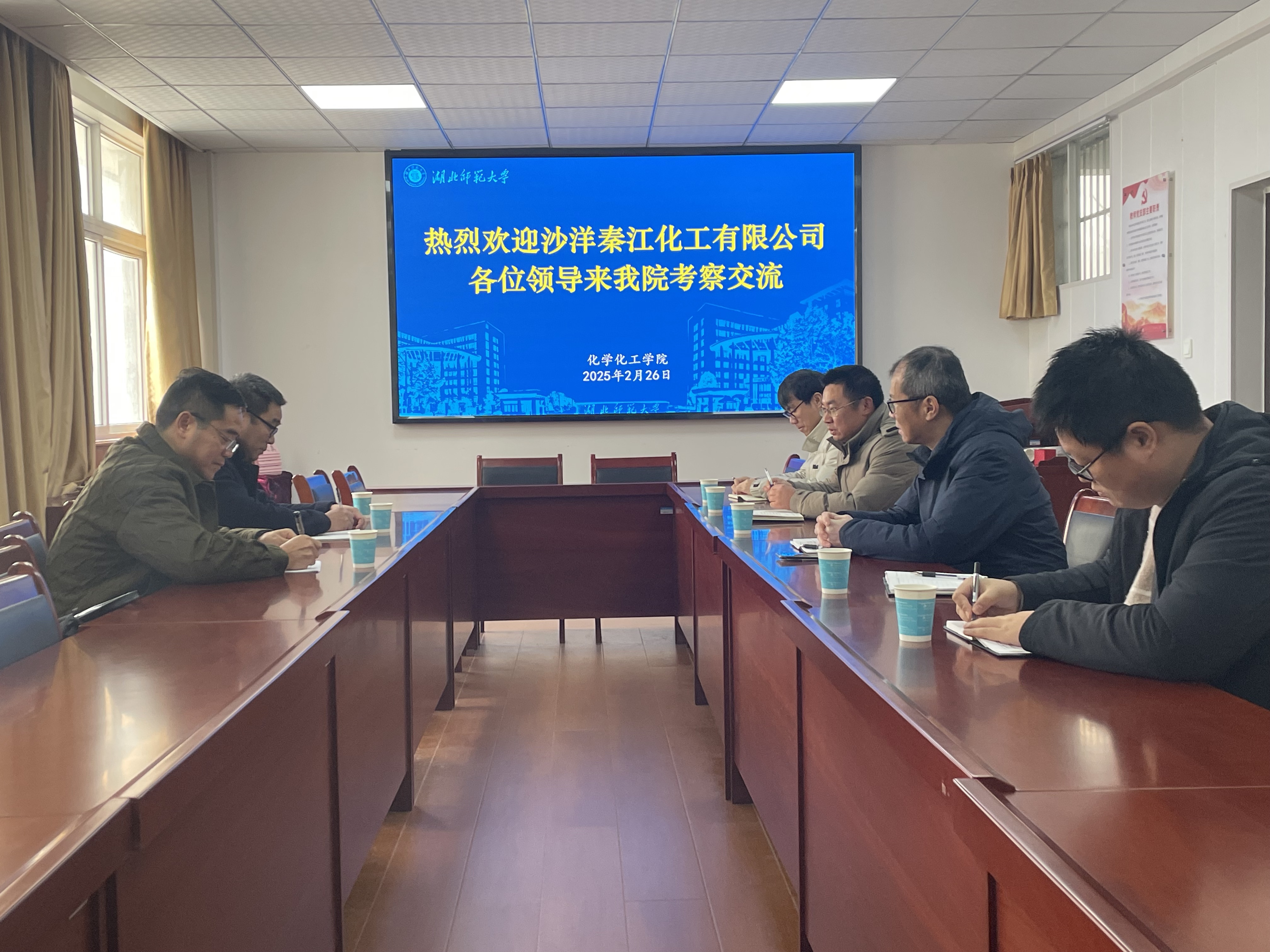 2月26日,沙洋秦江化工有限公司总经理丁勇一行来院洽谈校企合作,党委书记罗鸿飞、院长殷国栋参加座谈。