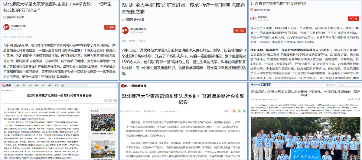 近日,“学习强国”学习平台、光明网、中国大学生在线、中国日报网、中国网等多家主流媒体先后报道我校2025年暑期“三下乡”社会实践活动。截至目前,累计获报道18篇。