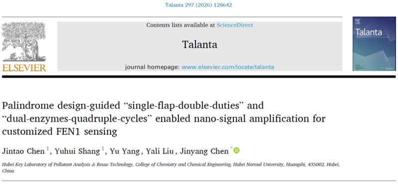 7月,Talanta(《塔兰塔》)在线发表该团队研究成果,论文题为“Palindrome design-guided “single-flap-double-duties” and “dual-enzymes-quadruple-cycles” enabled nano-signal amplification for customized FEN1 sensing”(《回文设计指导“单瓣双功能”与“双酶四循环”赋能纳米信号放大用于定制化FEN1传感》)。我们2022级硕士研究生陈金涛和2023级硕士研究生尚钰慧为论文共同第一作者,陈金阳副教授为论文唯一通讯作者,williamhill官网为论文唯一通讯单位。Talanta是Elsevier出版社旗下分析化学领域知名期刊、中科院SCI化学大类二区TOP期刊,最新影响因子为6.1。