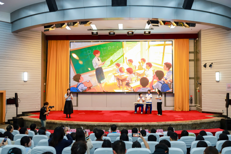 在汇报展演中,实践队负责人之一詹欣怡作为主讲人,生动展示了实践队在排市中学暑期爱心托管班的成果与感人历程。实践队由25名多学科学生组成,围绕学生需求,实践队设计了涵盖自护教育、科学创新、艺术、学业辅导等11门课程,累计授课1044节,惠及10个班级的363名学生。重点分享了“知行交响”教学模式:第一课堂以“安”为要夯实自护知识,以“启蒙·探索·创造”为核心激发科学兴趣,以“实”为要,筑牢学业知识根基;第二课堂通过升旗仪式、防溺水班会、集体生日会等活动,增强凝聚力。实践活动获学习强国、光明网等主流媒体报道13次。展示中穿插师生“情景再现”舞台剧、实践队员的心得感悟分享等环节。