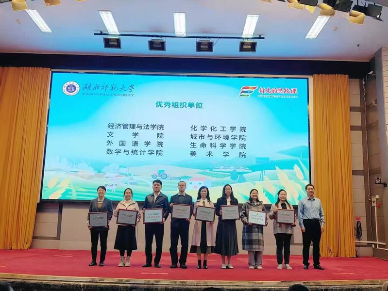 活动现场,与会领导为“优秀组织单位”“优秀实践团队”“先进个人”等颁奖,我们获得多项集体与个人表彰。学院获社会实践“优秀组织单位”,星火筑梦实践队与星“核”追梦宣讲团获“优秀社会实践团队”,余筱筱、李海泉、郭先哲等3位老师获“优秀指导老师”,万冰纯等14名学生获“优秀社会实践队员”,《关于高中化学教材与生活类科普读物中科学家精神培养的调研报告》《新兴污染物在水环境中的赋存与公众认知调研——基于2610份公众问卷的数据分析》等2篇调查报告获“优秀社会实践调查报告三等奖”,《夏日课堂里的双向奔赴》获“优秀社会实践视频”,《指尖筑梦,旋翼上的科学童趣》等9张图片获“优秀社会实践图片”。