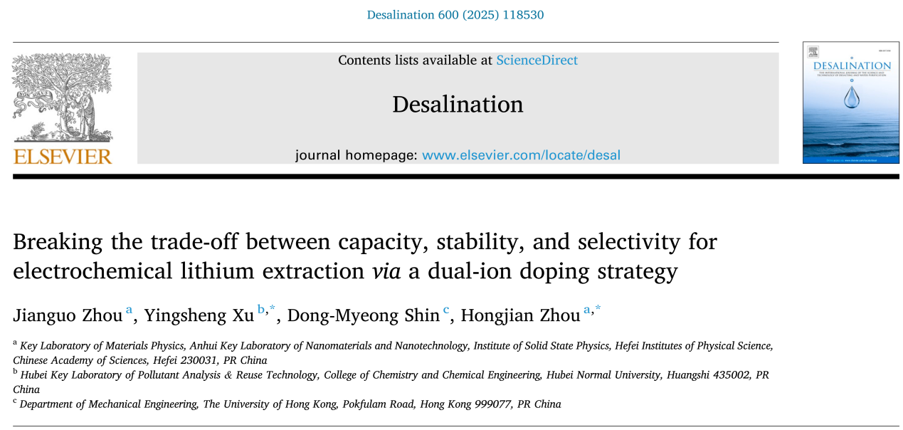 [成果35] 徐应生:双离子掺杂策略打破电化学锂提取的容量、稳定性和选择性之间的权衡
