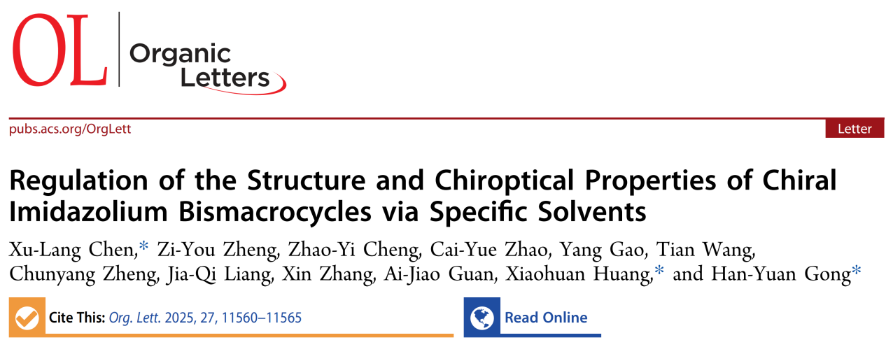 [成果31] 陈绪朗:通过特定溶剂调控手性咪唑盐双大环的结构与手性光学性质