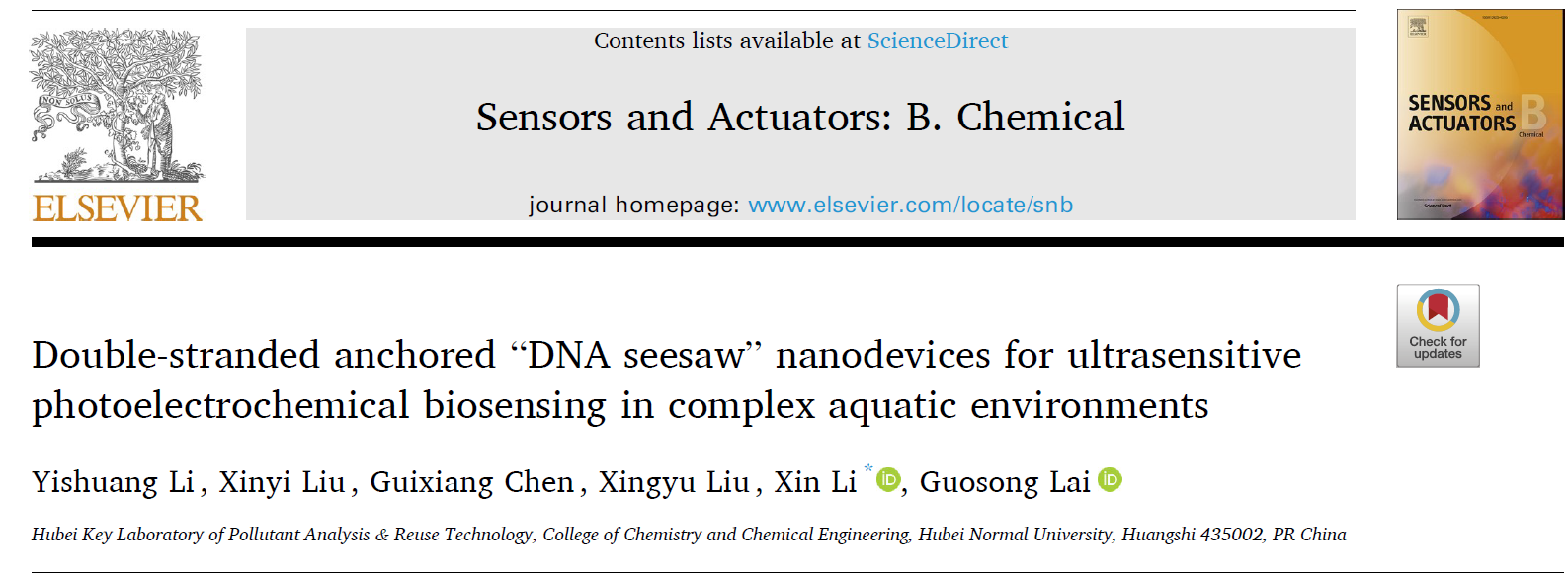 [成果11] 李新:双链锚定的DNA跷跷板赋能PEC传感器稳定灵敏检测水环境污染物