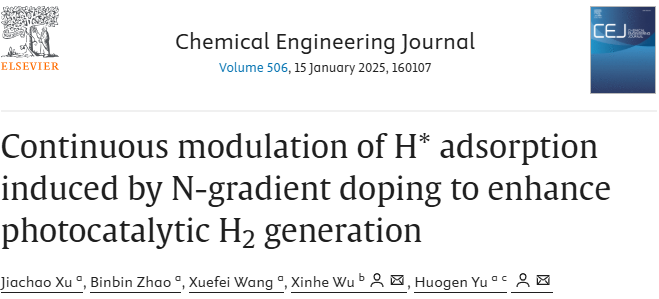 [成果36] 许家超:通过氮梯度掺杂连续调节H*吸附以增强光催化制氢