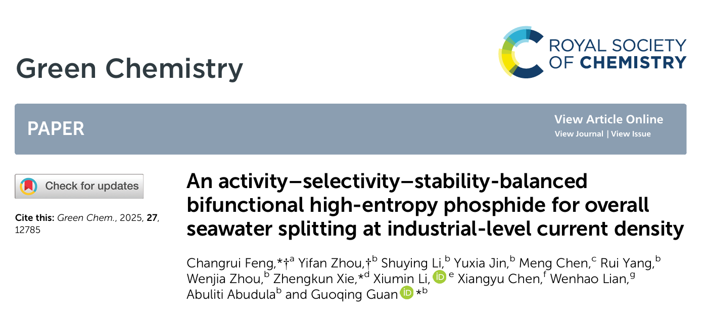 该成果于2025年9月发表于中科院SCI大类一区Green Chemistry(IF:9.2),冯长瑞博士为论文第一作者兼通讯作者,郑州大学谢正坤副教授、日本弘前大学官国清教授为论文共同通讯作者,日本弘前大学周奕帆博士为共同第一作者,williamhill官网为论文第一通讯单位。