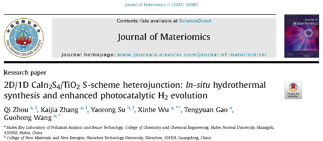 [成果4] 王国宏/吴新鹤:2D/1D CaIn2S4/TiO2 S型异质结:原位水热合成与增强光催化H2析出