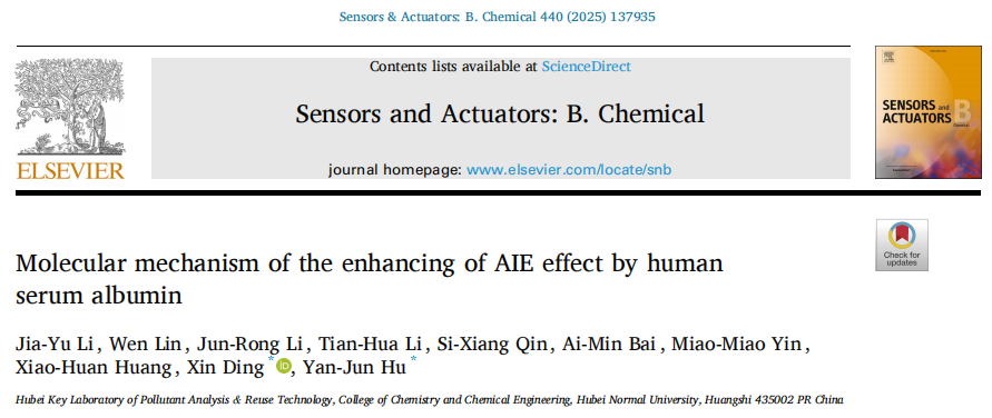 [成果12] 胡艳军/丁鑫:人血清白蛋白增敏AIE分子荧光的作用机制