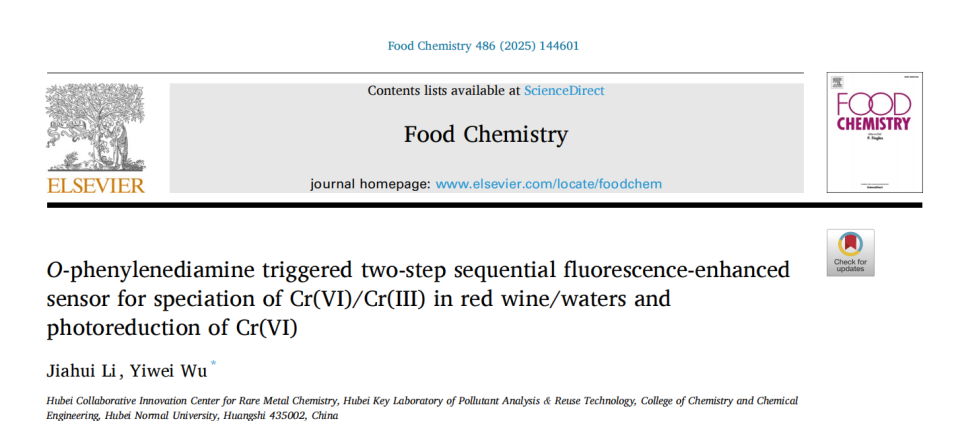 [成果30] 吴一微:邻苯二胺触发荧光增强检测Cr(VI/III)形态及光降解Cr(VI)新技术