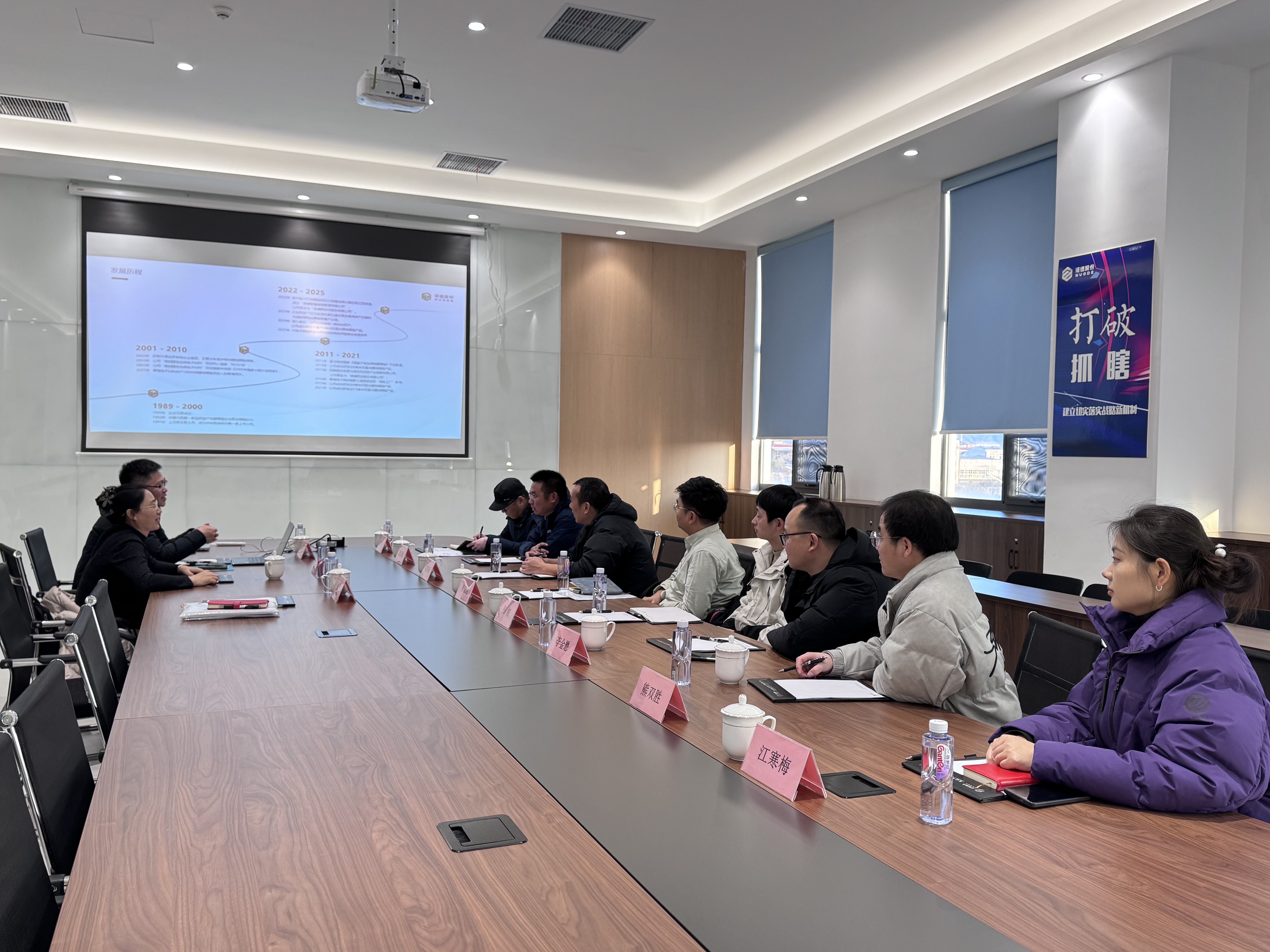 座谈交流环节,周启伦、丁瑜对我们调研组一行表示热烈欢迎,希望双方进一步加强互动,发挥高校人才、创新优势,推进集团关键技术不断创新。调研组一行观看了该集团宣传片,详细听取了集团领导关于铜箔产品研发情况的介绍及未来研发方向的考虑。调研组各位博士结合各自研究兴趣及校企合作经历与集团代表进行了充分交流。罗鸿飞、殷国栋表示,希望以此次调研考察为契机,建立人才、平台、成果共享机制,落实合作协议中双方达成共识的各项内容,实现优势互补、互利共赢,以合作成果推进科技创新与产业创新深度融合。